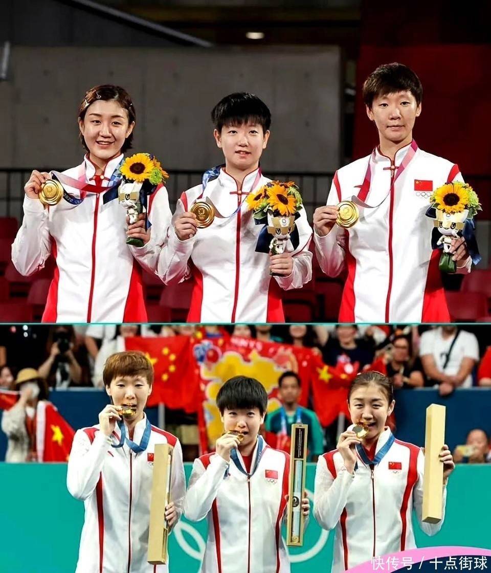 尤其是2021年的东京奥运会,中国女乒的三朵“金花”闪耀赛场,陈梦夺得女单金牌,孙颖莎获得银牌,随后三人联手夺得女团金牌,中国女乒实现奥运团体四连冠,当时的场景令人动容,陈梦为孙颖莎戴上金牌,孙颖莎为王曼昱戴上金牌,王曼昱又为陈梦戴上金牌,现场的媒体记者、志愿者、工作人员送上了热烈的掌声,当时孙颖莎在东京奥运会后表示:“我们三个人永远是一个集体,希望未来我们三个能够全力以赴,继续一起拿更多的冠军。”如今在全运会的领奖台上再次重现,虽然奖牌的成色不同,但三人依然是中国女乒最核心的力量